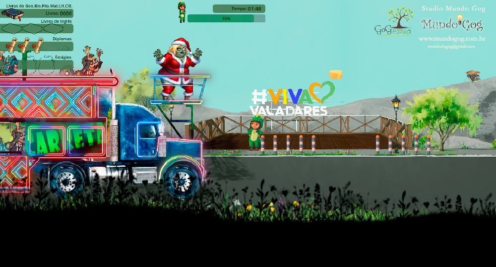 O Escape from Gv é um jogo do tipo plataforma 2D com artes ambientadas na cidade de Governador Valadares-MG e cheio de referencia a cultura mineira. O jogo trás artes muito interessantes e além de divertido aborda temas profundos de forma inovadora como: Migração ilegal, educação para vida e pro trabalho, assédio sexual e desinformação típica dos tempos atuais, um prato cheio para longas discussões. O projeto é uma forma inovadora de trazer para o debate assuntos, muitas vezes, difíceis de abordar e ao final se mostra com uma declaração de amor à nossa cultura, nossa mineridade e sentimento de pertencimento. Baixe versão demo na loja da Ichio, é gratuíto!!