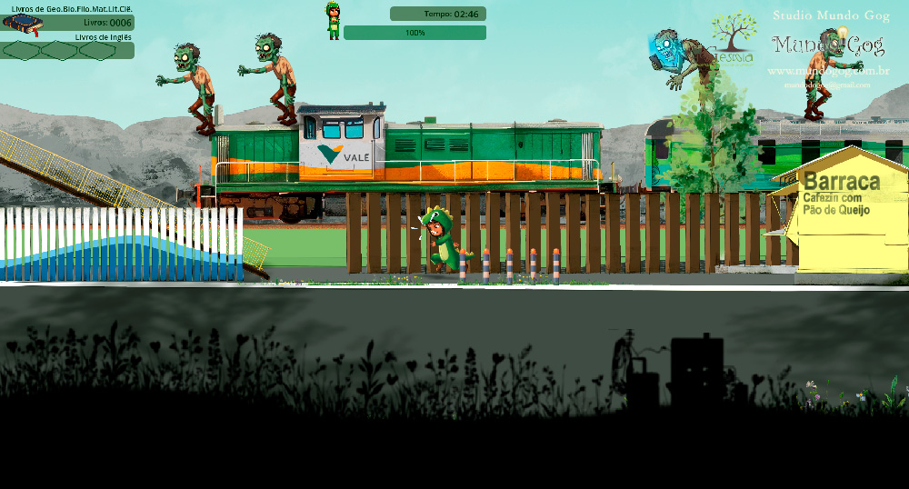 Nesse jogo contamos a estória da pequena V, uma valadarense trabalhadora que como muitos de nós sonha em imigrar para os EUA, e como acontece com a muitos de nos, o visto é negado com o argumento que nos falta os requisitos exigidos pelo consulado. A partir disso, ela inicia sua jornada buscando colecionar itens como: livros de inglês, diplomas, experiência de trabalho na tentativa de melhorar suas chances de conseguir o tão sonhado visto. Não bastando isso, nossa heroína tem que enfrentar, também como a maioria de nós, o assédio e todo tipo de desinformação típica dos tempos atuais, que aqui no jogo é representada pelos abjetos Zumbilófilos, e para enfrentar esses seres medonhos a melhor arma é nada mais, nada menos que livros. Então livro neles!!! Colecione livros, filosofia, matemática, biologia são as melhores arma para a vida