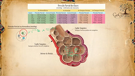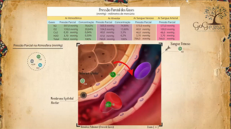 Essa é uma animação incrível que mostra em detalhes o caminho do ar no sistema respiratório, mostra de forma fantástica o processo de hematose, e por fim detalha o conceito da pressão parcial dos gases envolvidos na respiração, oxigênio, gás carbônico e o nitrogênio.